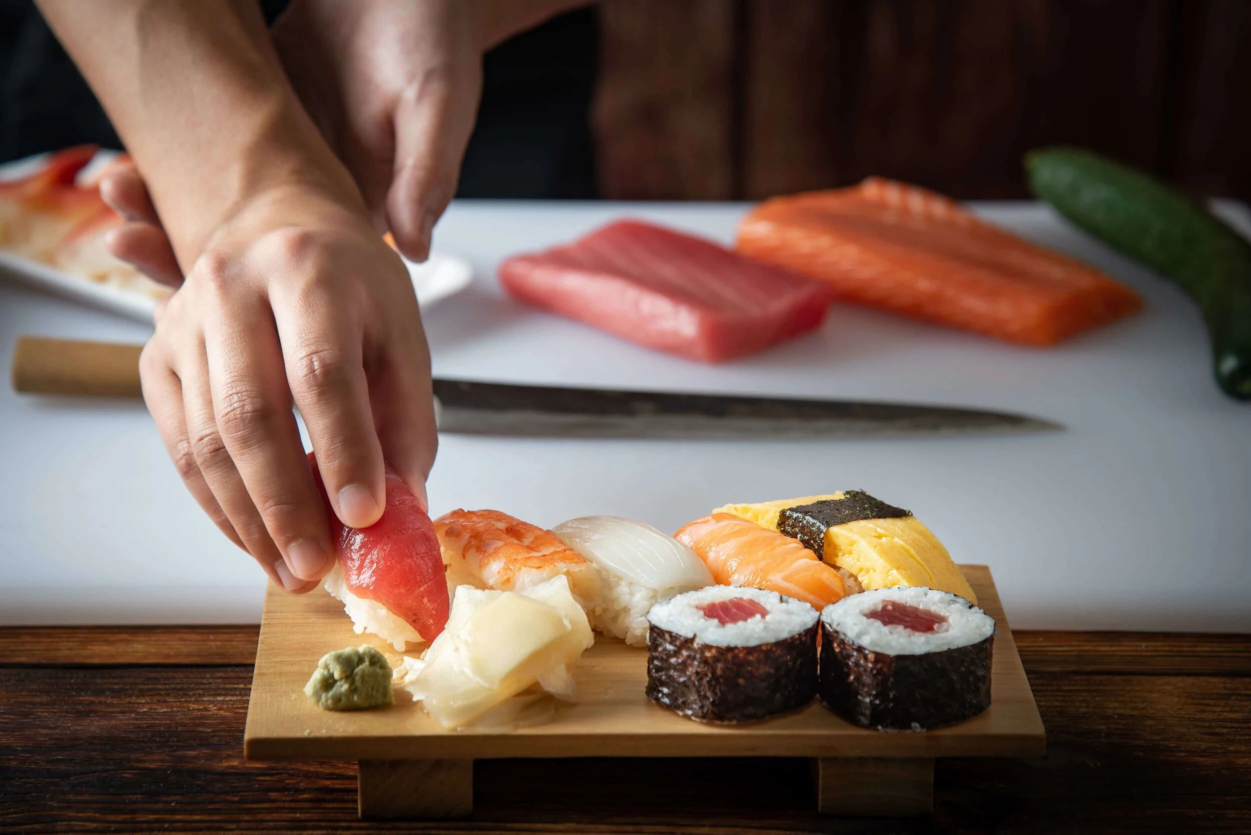 choice of teriyaki chicken or beef teriyaki, tuna sushi, 5pc tempura, 4pc California roll, and rice